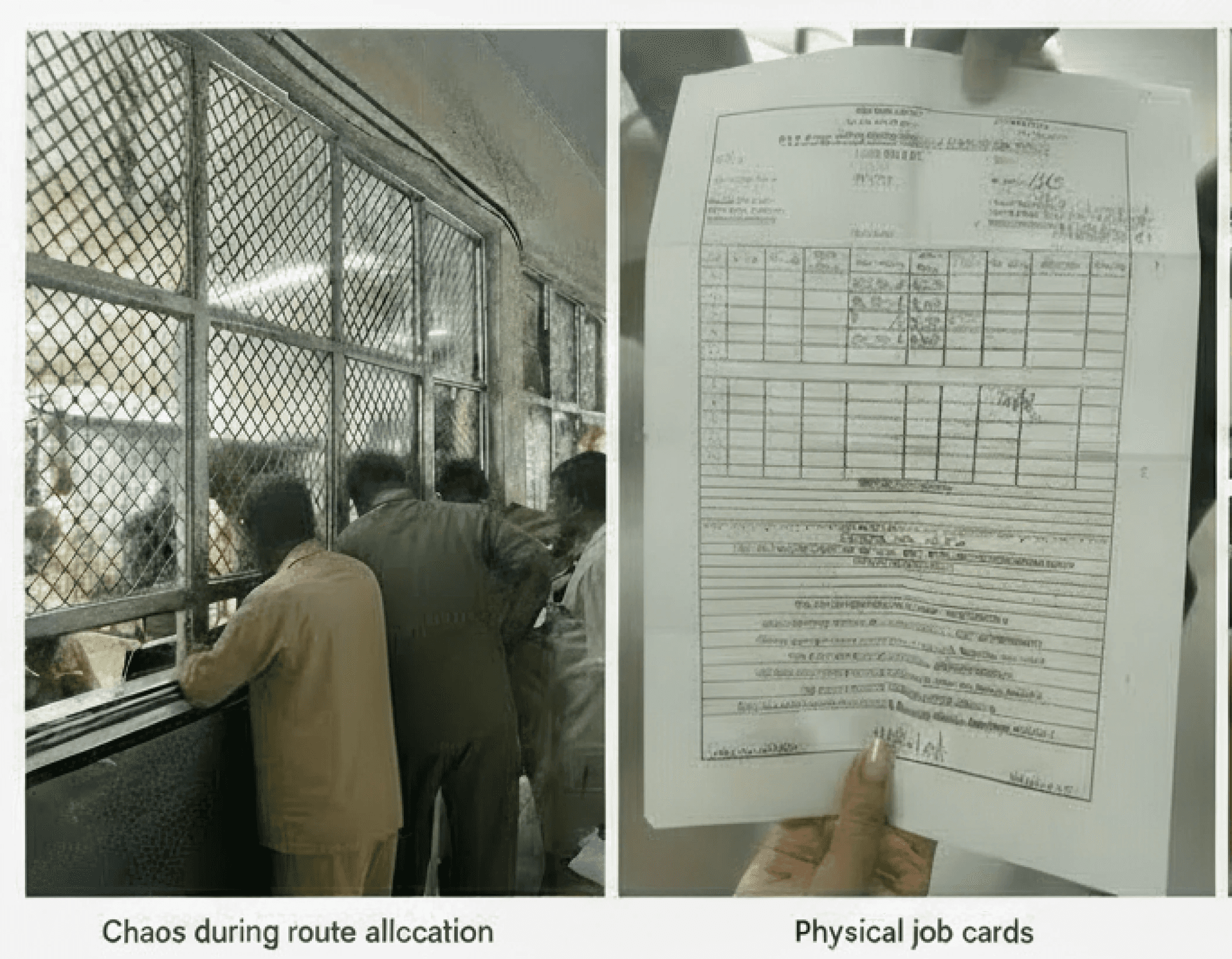 Drivers juggle daily check-ins, route allocations, trip logs, and incident reporting using a mix of paper job cards and scattered digital tools. With the recent introduction of electric buses, drivers must also manage new responsibilities like monitoring battery charge levels and adapting to vehicle differences, often without thorough digital training. Complex workflows, frequent technology changes, and reliance on local language add to the challenge, especially during peak hours or while onboarding new drivers.